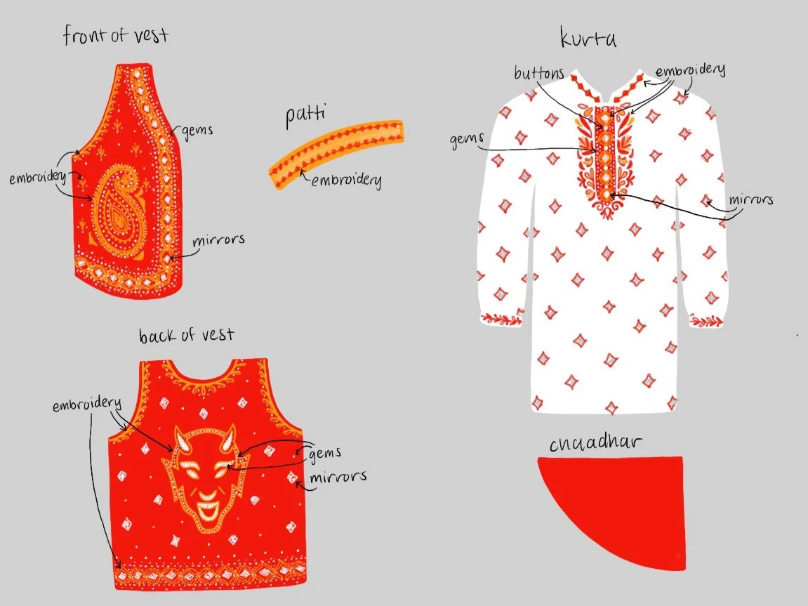 Designed vardi (traditional bhangra performance outfit) for my dance team to wear at competitions around the country.