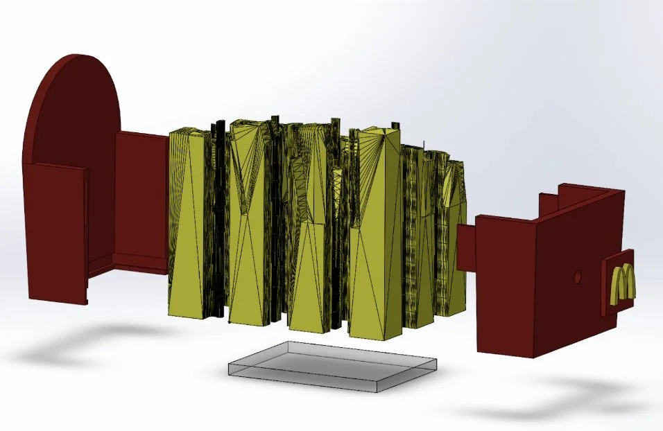 Our final design was a puzzle made of interlocking “fry” pieces that slide into one another, gradually increasing in height toward the back of the box to hint at how they should be assembled. The fry box itself acts as both packaging and part of the toy, with a clear polycarbonate bottom that slides into place and reveals a message once the puzzle is completed. Within the team, I focused on designing the box and making sure it could properly house the pieces while still functioning as part of the puzzle. This meant thinking through how the pieces would fit, how the bottom would slide in and out, and how the box could guide the user toward solving the puzzle. The result was a playful, hands-on toy that encourages curiosity and problem-solving while meeting the design constraints of safety, manufacturability, and cost.