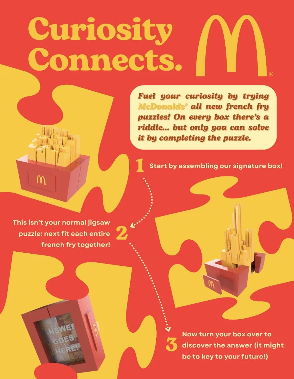 This was a group project for a class assignment where we were tasked with creating a fun and innovative McDonald’s Happy Meal toy for the Fluke Toy Corporation. The toy had to be low-cost, sustainable, safe for kids, injection moldable, and something the market hadn’t seen before. Safety was a major design constraint — every component had to pass the choking hazard test device, which is a tube with a 1.25” internal diameter and a depth of 1–1.25”. Our team wanted something that felt interactive, playful, and stimulating for kids, so we landed on the idea of a French fry puzzle. The toy consists of puzzle piece–shaped fries that fit into a fry box, with a riddle on the Happy Meal box that encourages kids to assemble the puzzle in order to reveal the answer hidden underneath.