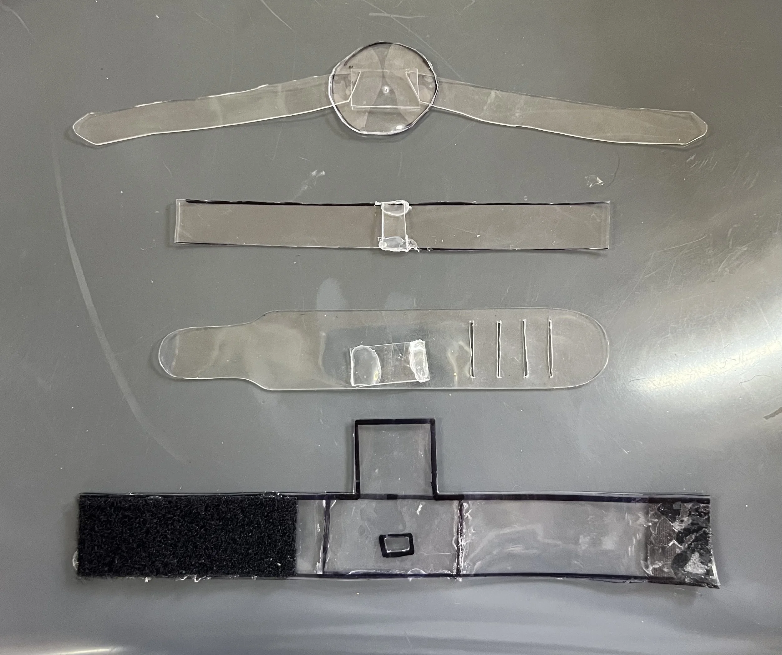 Final prototype of attachment band with color coordination system and top flap to protect sensor